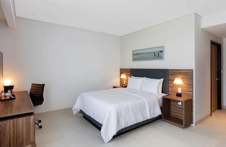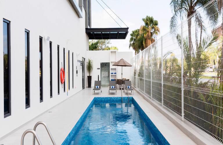 Ben je op zoek naar een comfortabel verblijf in het hart van Cancún? Het 3-sterrenhotel Hampton Inn by Hilton Cancun Cumbres biedt moderne faciliteiten en een gunstige locatie voor zowel strandliefhebbers als zakenreizigers. Gelegen op slechts 15 minuten van de internationale luchthaven van Cancún, is dit hotel ideaal voor een zorgeloos verblijf. Begin je dag met een verfrissende duik in het buitenzwembad en geniet daarna van een uitgebreid ontbijtbuffet. Met een fitnesscentrum, gratis WiFi en een 24-uursreceptie staat alles in het teken van jouw comfort. Ontdek de nabijgelegen stranden of winkelcentra, allemaal binnen handbereik. Boek nu bij D-reizen en ervaar het gemak van Hampton Inn by Hilton Cancun Cumbres!